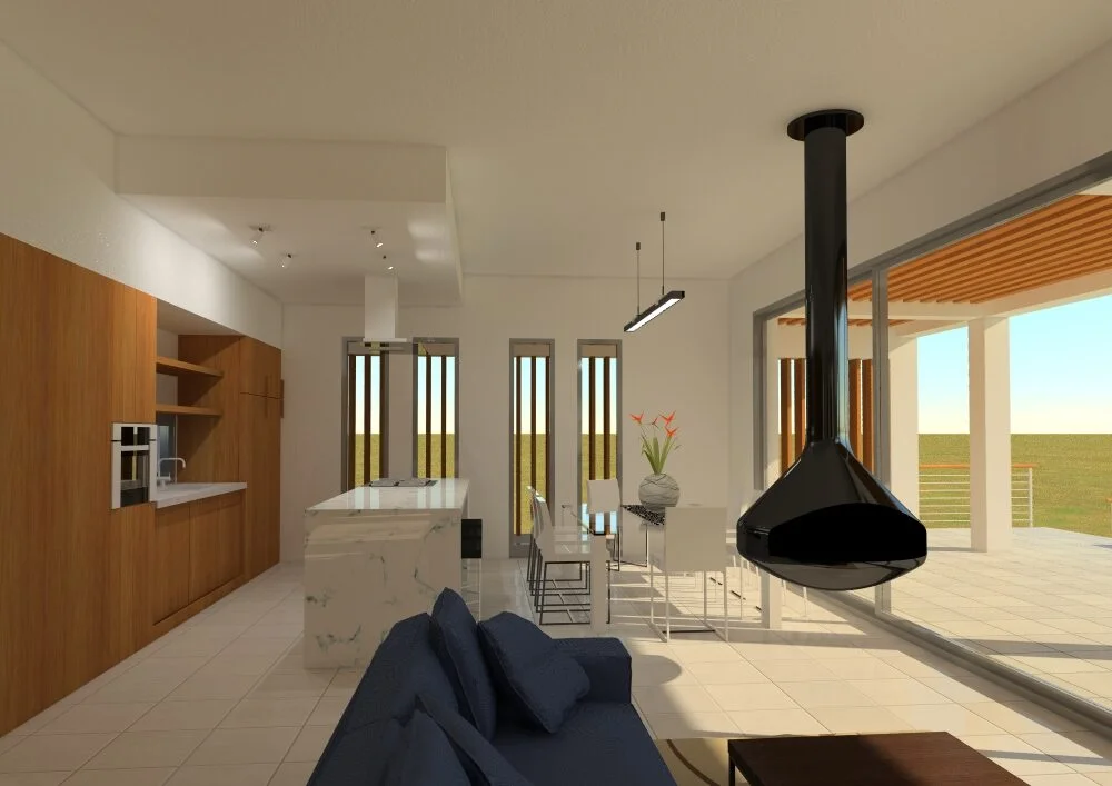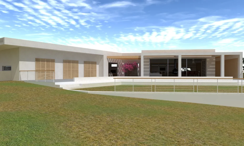 Η μελέτη αφορά την ανέγερση ισόγειας μονοκατοικίας με τμήμα υπογείου. Στόχος ήταν το κτίριο να εναρμονίζεται με το φυσικό τοπίο αλλά ταυτόχρονα να εκμεταλλεύεται την απρόσκοπτη θέα, με διαχωρισμό μεν των λειτουργιών της κατοικίας αλλά και ροϊκότητα μεταξύ αυτών.