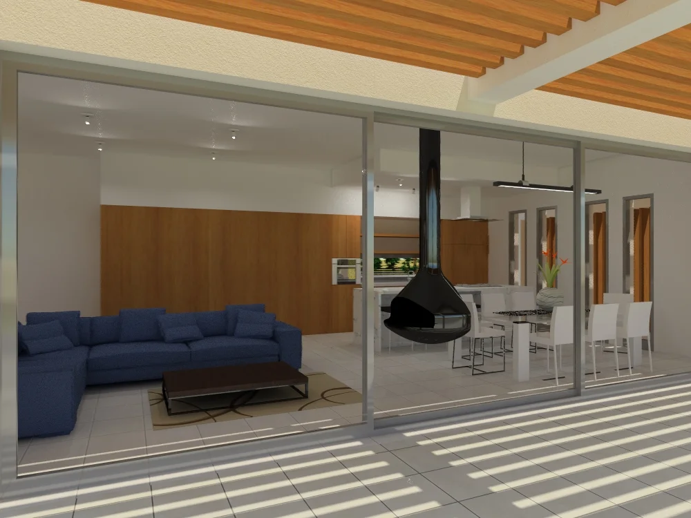 Στον υπαίθριο χώρο έμπροσθεν του σαλονιού σχεδιάστηκε μπετονένια πέγκολα με περσίδες αλουμινίου για τη σκίαση κατά τους θερινούς μήνες αλλά τα ηλιακά κέρδη κατά τους χειμερινούς. Το υπόγειο χρησιμοποιείται ως αποθηκευτικός χώρος και για τις Η/Μ εγκαταστάσεις.